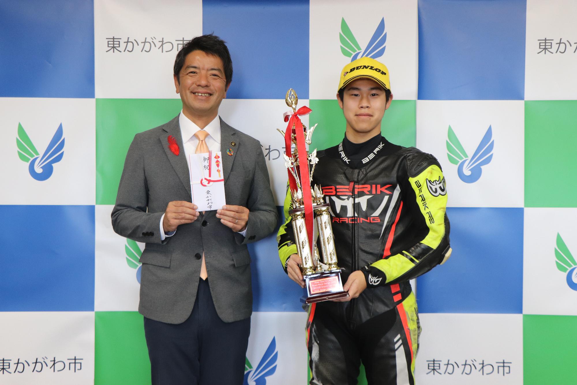 東かがわ市在住の山田 響樹さんが、ミニバイクレース 近畿シリーズ年間チャンピオンに輝きました。この報告のため、表敬訪問にいらっしゃいました。