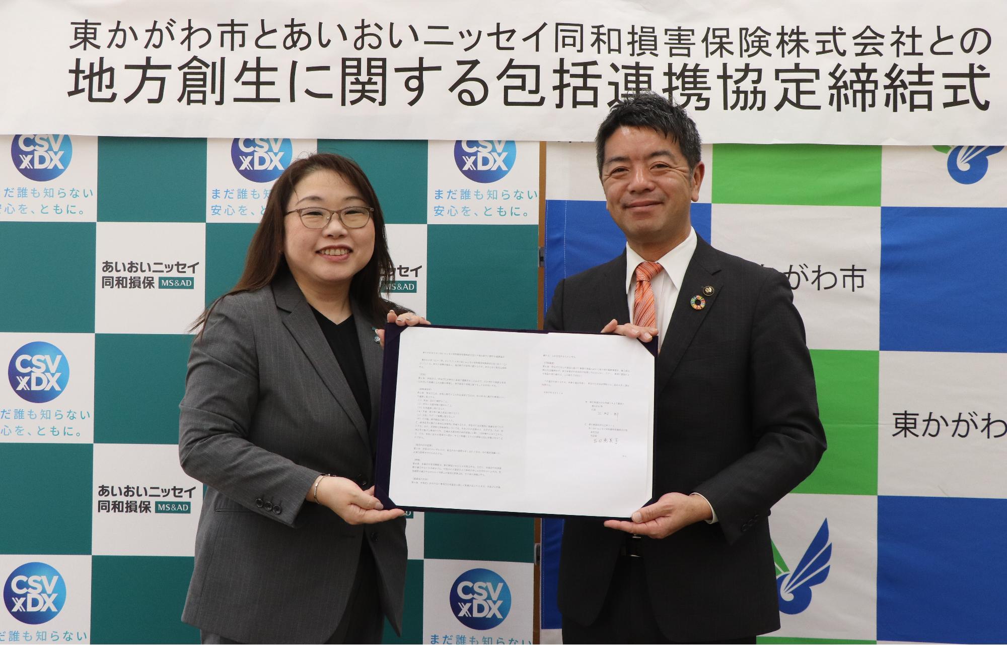 2月17日(火曜日)に市役所にて、あいおいニッセイ同和損害保険株式会社との包括連携協定締結式が行われました。